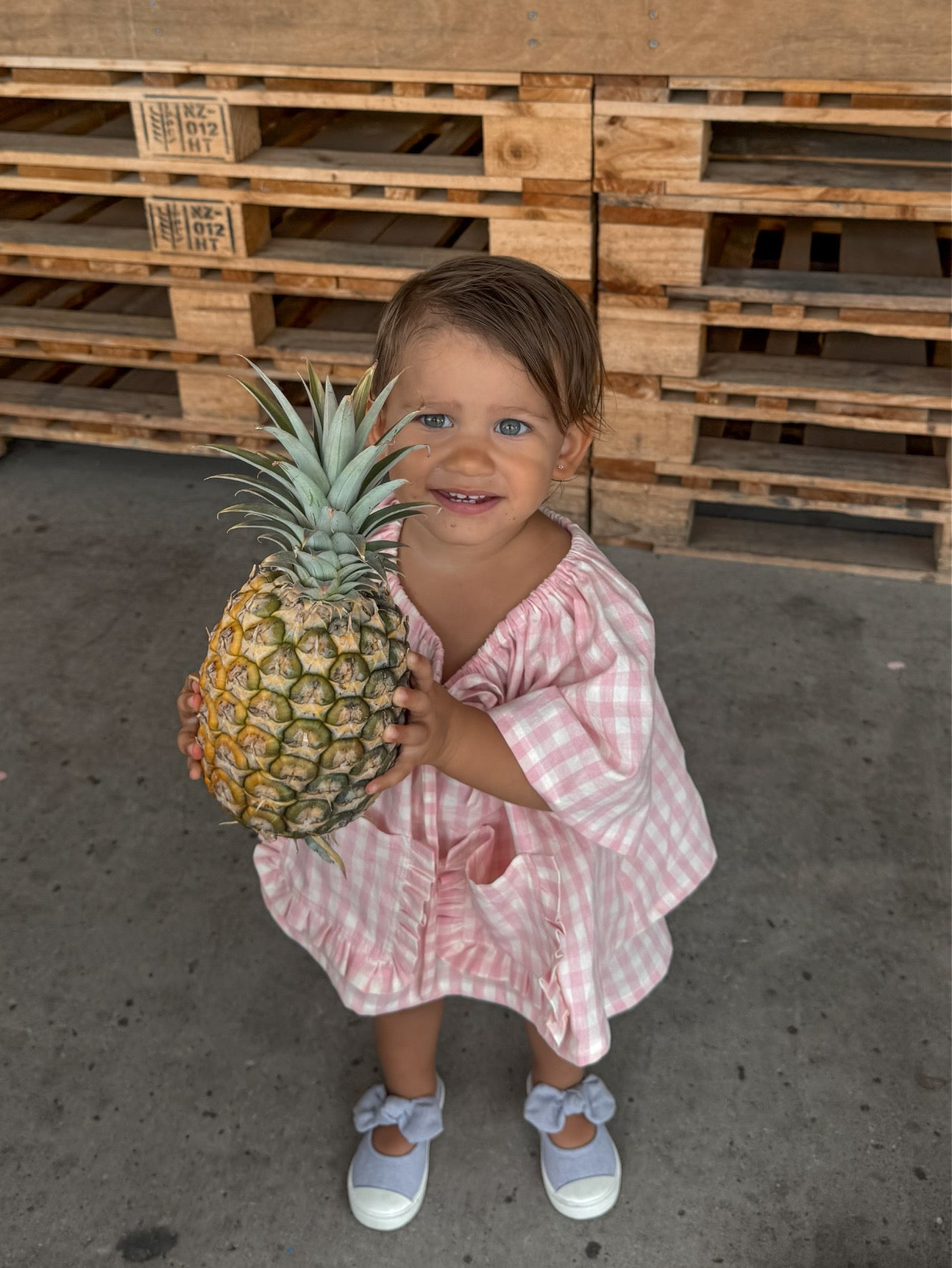 Daphne runs true to size. To help choose the best fit, we recommend measuring the length of another shirt your daughter loves
