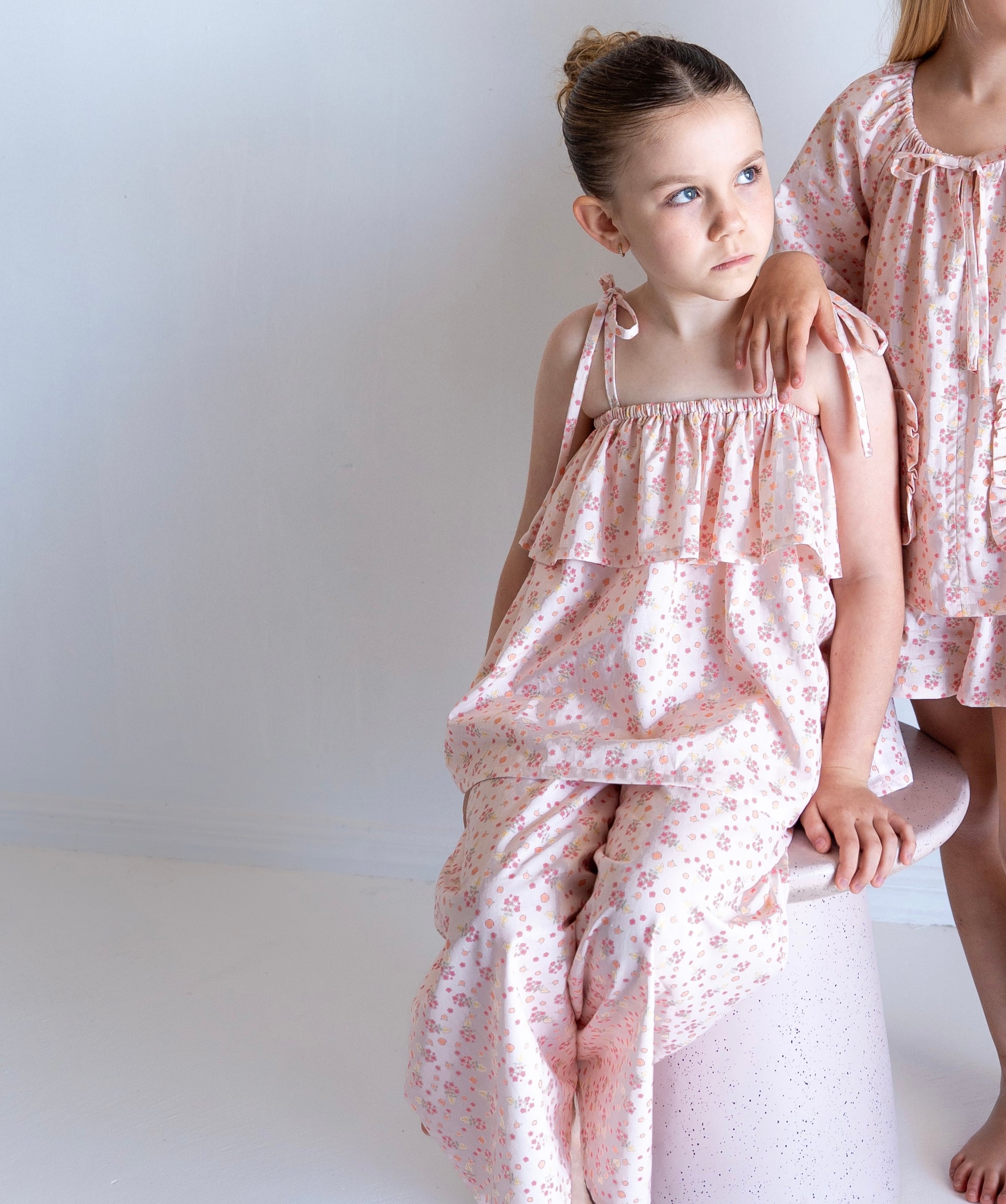 Our Pants run true to size. To help choose the best fit, we recommend measuring your daughter's waist and the length of a pair of pants she already loves.